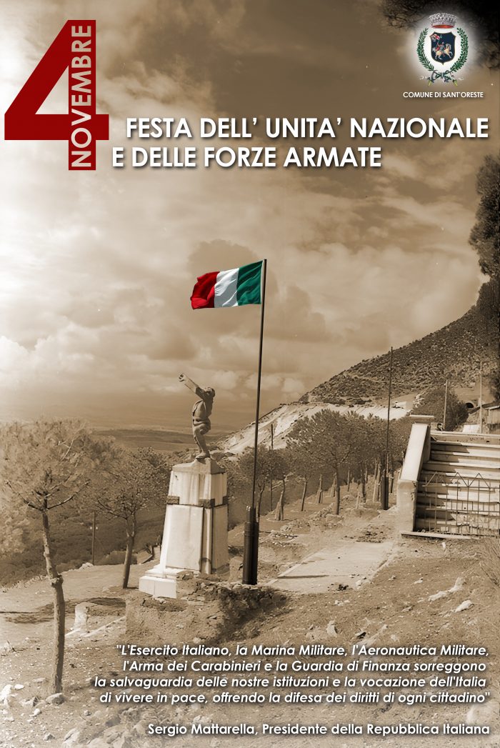 L’Amministrazione comunale invita tutta la cittadinanza ad esporre il tricolore in segno di commemorazione della Festa dell’Unità Nazionale e delle Forze Armate ed invita a partecipare al seguente