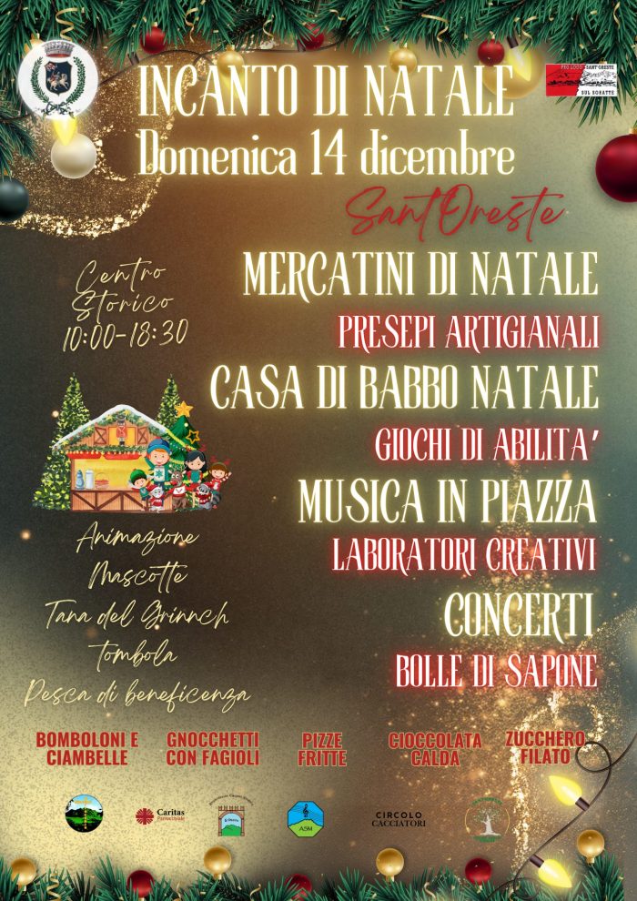 E’ ufficialmente iniziato “Incanto di Natale” che prende vita nel cuore del centro storico di Sant’Oreste, dove si accende la Magia del Natale.