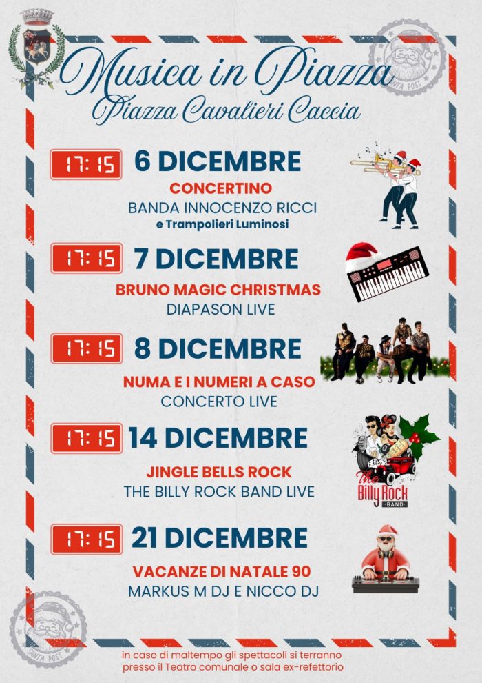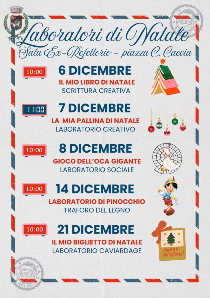 Casa di Babbo Natale, Mercatini, Laboratori creativi, Musica e Proiezioni Cinematografiche vi Aspettano in Piazza Cavalieri Caccia!